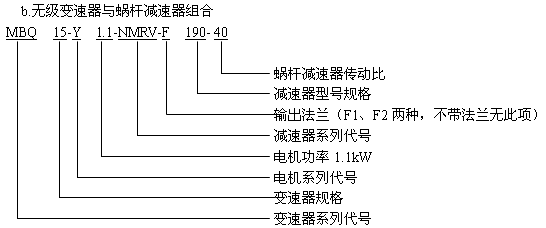 蝸桿減速器與無級變速器組合NMRV系列型號標(biāo)記