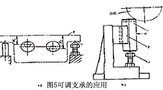 可調(diào)支承主要用于工件以粗基準(zhǔn)面定位、或定位基面的形狀復(fù)雜(如成型面、臺(tái)階面等),以及各批毛壞的尺寸、形狀變化較大時(shí)的情況。如圖5a所示工件,毛坯為砂型鑄件,先以A面定位銑B面,再以B面定位鏜雙孔。銑B面時(shí),若采用固定支承,由于定位基面A的尺寸和形狀誤差較大,銑完后,B面與兩毛坯孔(圖中虛線)的距離尺寸H1、H2變化也大,致使鏜孔時(shí)余量很不均勻,甚至余量不夠。因此,將固定支承改為可調(diào)支承,再根據(jù)每批毛坯的實(shí)際誤差大小 調(diào)整支承釘?shù)母叨,就可避免上述情況。圖5b為利用可調(diào)支承加工不同尺寸的相似工可調(diào)支承在一批工件加前調(diào)整一次。在同一批工件加工中,它的作用與固定支承相同。