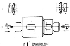 為了減少工件裝夾次數(shù),常采用各種回轉(zhuǎn)工作臺、回轉(zhuǎn)夾具或移動夾具,使工件在一次裝夾中,先后處于幾個(gè)不同的位置進(jìn)行加工。工件相對于機(jī)床或刀具每占據(jù)一個(gè)加工位置所完成的那部分工藝過程,稱為工位。工件裝夾后,先在工Ⅰ銑端面,然后移動到工位Ⅱ鉆頂尖孔,如圖1所示。