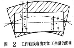 工件有些形狀和位置偏差不包括在尺寸公差的范圍內,但這些誤差又必須在本工序的加工中糾正,在本工序的加工余量中必須包括它。如圖2所示軸類零件,由于上工序軸線有直線度誤差δ,本工序加工余量必須相應增加2δ.屬于這一類偏差的有直線度、位置度、同軸度、平行度及軸線與端面的垂直度等。