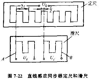 1)感應(yīng)同步器的工作原理,感應(yīng)同步器是一種電磁式的高精度位移檢測(cè)元件、按其結(jié)構(gòu)方式的不同可分為直線(xiàn)式和旋轉(zhuǎn)式兩種,前者用于長(zhǎng)度測(cè)量,后者用于角度測(cè)量、感應(yīng)同步器是利用電磁耦合原理,將位移或轉(zhuǎn)角轉(zhuǎn)變?yōu)殡娦盘?hào),借以進(jìn)行位置檢測(cè)和反饋控制,在數(shù)控機(jī)床上使用極為普遍。直線(xiàn)感應(yīng)同步器中有定尺和滑尺兩部分(見(jiàn)圖7-22)。