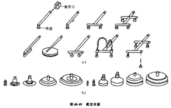 (3)真空夾緊,對零件施加負壓,使零件貼進在夾爪上。常用形式為用按一定方式排列的一組吸向零件提供真空。