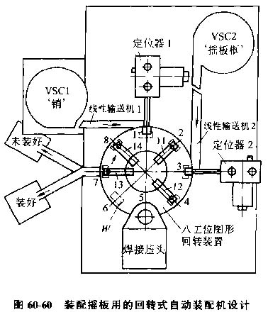 (1)搖板自動裝配機,圖60-59所示的搖板由搖板框及銷組成,用電阻焊聯接。