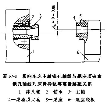 例如,要查明圖57-1所示車床精度標(biāo)準中主軸錐孔軸線與尾座頂尖套軸線對床身導(dǎo)軌的等高度的裝配尺寸鏈。