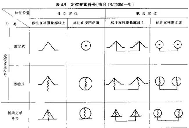 (3)定位與夾緊符號(hào)(見(jiàn)表4-9)