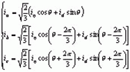矢量控制也就是通過(guò)控制兩相的轉(zhuǎn)子參考坐標(biāo)d-q軸的電流來(lái)等效控制電樞的三相電流。通過(guò)前面的系統(tǒng)控制框圖可以清楚理解這種等效,可以用下面的公式表示:
