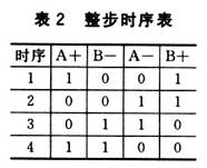 步進(jìn)電機(jī)有兩種工作方式:整步方式和半步方式。以步進(jìn)角1.8°四相混合式步進(jìn)電機(jī)為例,在整步方式下,步進(jìn)電機(jī)每接收一個(gè)脈沖,旋轉(zhuǎn)1.8°,旋轉(zhuǎn)一周,則需要2OO個(gè)脈沖。在半步方式下,步進(jìn)電機(jī)每接收一個(gè)脈沖,旋轉(zhuǎn)0.9°,旋轉(zhuǎn)一周,則需要4OO個(gè)脈沖?刂撇竭M(jìn)電機(jī)旋轉(zhuǎn)必須按一定時(shí)序?qū)Σ竭M(jìn)電機(jī)引線輸入脈沖。以上述四相六線制電進(jìn)電機(jī)為例,其半步工作方式和整步工作方式的控制時(shí)序如表1和表2所列。