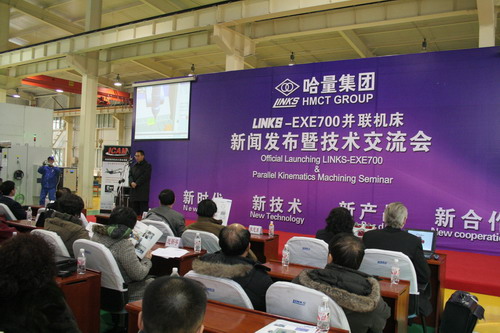 據(jù)哈量集團董事長魏華亮介紹,這款新一代LINKS-EXE700并聯(lián)機床是哈量集團引進瑞典愛克斯康(EXECHON)公司并聯(lián)機床技術(shù),通過消化吸收及再創(chuàng)新而設(shè)計制造的具有國際領(lǐng)先水平的產(chǎn)品。這種機床具有剛性高、動態(tài)及高速性能好、加工范圍大等特點,一次裝夾即可實現(xiàn)5到6面及全部復(fù)合角度的位置加工,特別適用于敏捷加工或復(fù)雜異型件及復(fù)合角度孔和曲面的加工等。