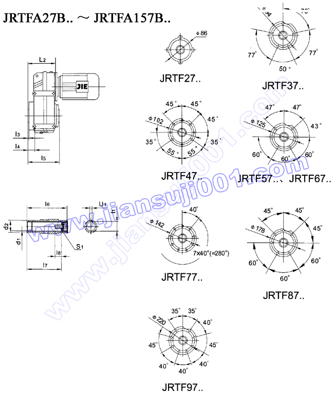 JRTF平行軸——斜齒輪減速電機安裝尺寸(JRTF27..~JRTF157..,JRTFA27B..~JRTFA157B..) |