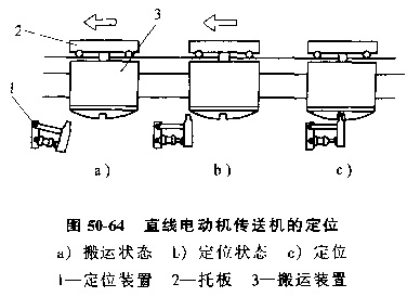 圖50-64顯示直線電動機傳誦機設(shè)置的定位裝置及其定位過程。