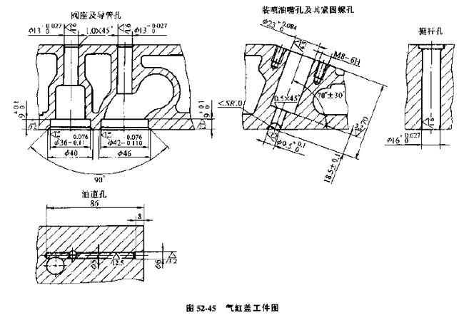 鏜進(jìn)氣導(dǎo)管孔及閥座孔;用復(fù)合鉸裝噴油嘴孔 |