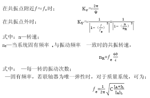 當(dāng)需要減振、緩沖、改善傳動系統(tǒng)對中性能時,應(yīng)選用撓性或彈性聯(lián)軸器,且機(jī)組系統(tǒng)中聯(lián)國器為唯一彈性部件,主、從動機(jī)可簡化為兩個質(zhì)量系統(tǒng),此時可采用以下計(jì)算,其他情況則需引入振動計(jì)算。