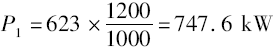 按i=4.5及n1=1200r/min接近公稱轉(zhuǎn)速1000r/min,查表23,ZDS450,i=4.5,n1=1000r/min,P1=623kW,當(dāng)n1=1200r/min時,折算公稱功率:
