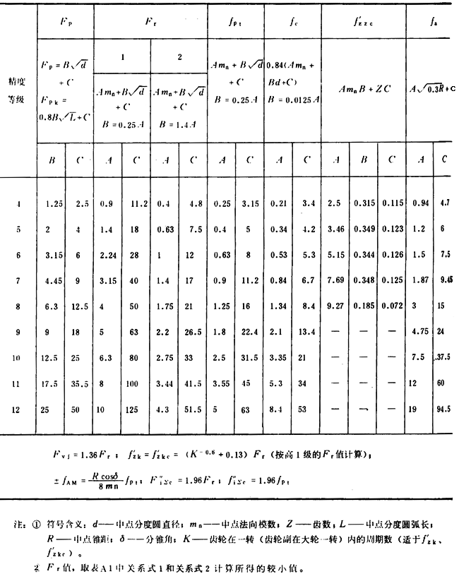 A1切向綜合公差Fi′、一齒切向綜合公差fi′、軸交角綜合公差FiΣ″、一齒軸交角綜合公差fiΣ″值分別按下列關(guān)系式計算確定: