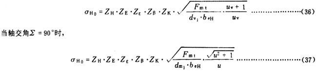 赫茲應(yīng)力是影響齒面接觸應(yīng)力的基本因素。本標準考慮工作條件將修正后的赫茲應(yīng)力作為齒面計算接觸應(yīng)力。