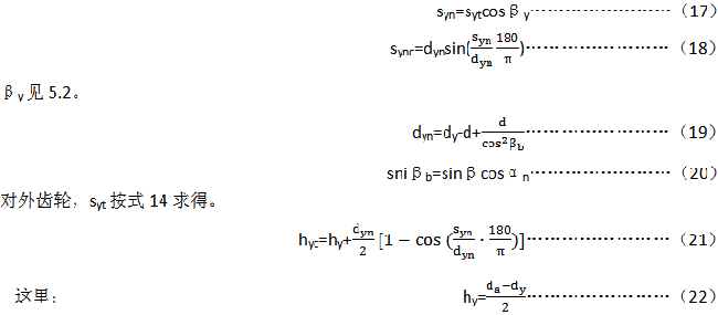 控制相配齒輪的齒厚是十分重要的,以保證它們在規(guī)定的側(cè)隙下運(yùn)行。有些情況下,由于齒頂高的變位,要在分度圓直徑d處測量齒厚不太容易,故而用一個(gè)計(jì)算式給出在任何直徑dy處齒厚s,見圖16,推薦選取dy=d+2mnx。