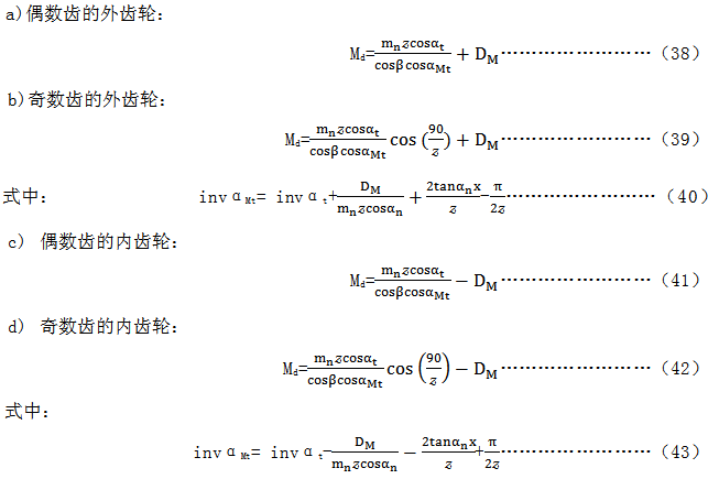 Md的公稱值中不包括側(cè)隙的允許偏差,應(yīng)從公稱值減去上偏差Eyns和下偏差Eyns,Eyns和Eyni由下列方程式轉(zhuǎn)換(見7.2)。