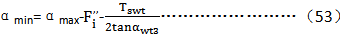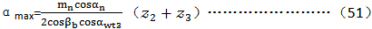 在下面求αmin的公式中,用αwt3作為最小壓力角是一個(gè)近似的方法,如時(shí)需要更為精確的結(jié)果,可用式49或工50和αmin重新計(jì)算,取得最后的數(shù)值。