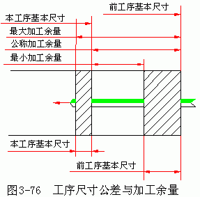 圖 3-76 表示了工序尺寸公差與加工余量間的關(guān)系。余量公差是加工余量間的變動(dòng)范圍,其值為