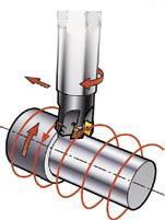 切削速度由刀具的旋轉(zhuǎn)來提供,進(jìn)給則通過工件的旋轉(zhuǎn)與刀具的線性進(jìn)給相結(jié)合來進(jìn)行。因此,只有在工件能夠旋轉(zhuǎn)的情況下才適合車銑。