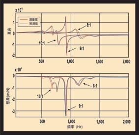 圖3:某些工程師可能將這些圖看成是頻率響應(yīng)圖的“真實(shí)”和“想象”成分。但是這里不需要理解它是什么含義。圖形表示在某個(gè)給定的應(yīng)用場(chǎng)合以不同懸伸長(zhǎng)度使用同一把刀具發(fā)生顫振的趨勢(shì)。振幅較高意味著發(fā)生顫振的趨勢(shì)較高。這些圖表示,在將長(zhǎng)徑比從8:1增加到9:1時(shí),增加懸伸長(zhǎng)度會(huì)增加顫振的趨勢(shì)。但是,當(dāng)這種比例增加到10:1時(shí),這種趨勢(shì)又倒過來了,此時(shí)卻產(chǎn)生了更加穩(wěn)定的懸伸值。