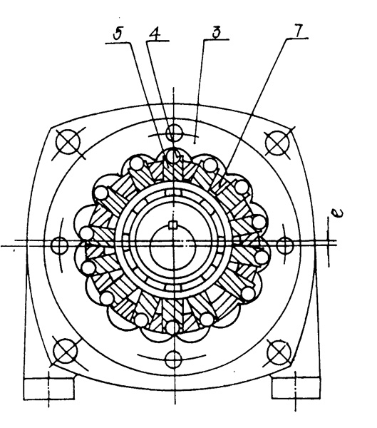 | 內(nèi)齒減速機(jī)屬于機(jī)械傳動(dòng)減速裝置,其主要解決齒輪減速機(jī)同時(shí)接觸受力的點(diǎn)數(shù)少,相對(duì)體積大,重量重,擺線針輪減速機(jī)制造難度大,維修復(fù)雜,以及推桿減速機(jī)抽齒數(shù)多,發(fā)展受到限制等問(wèn)題。本實(shí)用新型的解決方案是,內(nèi)齒減速機(jī)由偏心機(jī)構(gòu)、驅(qū)動(dòng)圈、固齒圈等部分組成,在沿驅(qū)動(dòng)圈外圓軸徑向開(kāi)設(shè)有等分導(dǎo)槽孔,槽內(nèi)裝有滾動(dòng)體,當(dāng)采用單級(jí)減速結(jié)構(gòu)時(shí),可實(shí)現(xiàn)8~70的各種傳動(dòng)比,具有結(jié)構(gòu)簡(jiǎn)單,體積小,承載能力強(qiáng),便于維修等優(yōu)點(diǎn)。 |