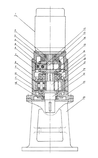 | 行星齒輪減速機(jī),屬于減速裝置設(shè)備領(lǐng)域,具體是化工、發(fā)電、耐火、陶瓷、冶金、礦山及起重運(yùn)輸?shù)刃袠I(yè)用減速設(shè)備。包括電動(dòng)機(jī)(1)、傳動(dòng)裝置、輸出軸(21)及機(jī)座(23),其特征在于:傳動(dòng)裝置為行星齒輪傳動(dòng),電動(dòng)機(jī)(1)位于上方,與行星齒輪傳動(dòng)裝置相連,傳動(dòng)裝置與輸出軸(21)相連,輸出軸(21)與下方的機(jī)座(23)相連。具有功率大、承載大、使用壽命長(zhǎng)、效率高等優(yōu)點(diǎn)。 |