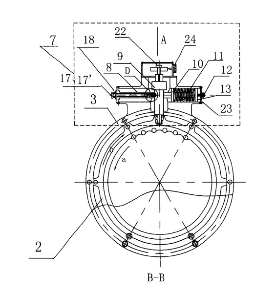 一種擺線針輪減速機,包括針齒殼,前機殼,輸出軸,輸入軸,后機殼。其特征在于:減速機的針齒殼安裝在后機殼內(nèi),前后機殼固定連接,針齒殼可以以輸入軸為中心在后機殼內(nèi)轉動;在減速機本體上設置一個機械扭矩保護裝置。