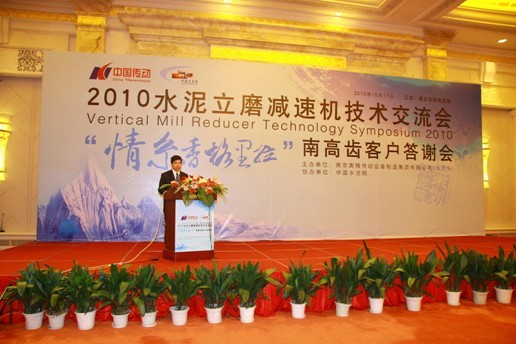 大會(huì)由陳永道副總經(jīng)理致歡迎詞,他首先代表南高齒的全體員工對(duì)各位代表的光臨表示熱烈歡迎,向參加此次會(huì)議的各企業(yè)領(lǐng)導(dǎo)、專家、代表長(zhǎng)期以來(lái)對(duì)南高齒的支持、幫助、關(guān)心表示衷心的感謝。近年來(lái),通過(guò)全體員工的不懈努力,南高齒取得了長(zhǎng)足的進(jìn)步。2010年市場(chǎng)開拓取得了新的成績(jī),在風(fēng)力發(fā)電、建材、冶金、船舶、機(jī)車、石油化工等領(lǐng)域市場(chǎng)占有率不斷提高,其中風(fēng)力發(fā)電今年將成為世界第一位齒輪箱銷售公司,我們通過(guò)不斷的技術(shù)創(chuàng)新,逐步縮小了傳統(tǒng)領(lǐng)域齒輪箱技術(shù)與世界先進(jìn)技術(shù)的差距,在產(chǎn)品、技術(shù)、管理等多方面與國(guó)際接軌,走國(guó)際化發(fā)展的道路。南高齒品牌深受廣大用戶的信賴和認(rèn)可。以建材行業(yè)為例,南高齒創(chuàng)造了五個(gè)第一:我們是國(guó)內(nèi)第一家采用1+1結(jié)構(gòu)的大型立磨減速機(jī)的廠家,解決了大型螺傘齒輪巨大瓶頸問(wèn)題;我們是國(guó)內(nèi)第一家采取功率雙分流的大型立磨減速機(jī)的廠家,已為市場(chǎng)提供20多臺(tái)套,最大功率5400kw出口印度,成功率100%;我們是國(guó)內(nèi)第一家為市場(chǎng)提供雙行星大型立磨減速機(jī)的廠家,產(chǎn)品最大功率3600kw;我們是國(guó)內(nèi)第一家為市場(chǎng)成功提供行星結(jié)構(gòu)中心傳動(dòng)磨機(jī)減速機(jī)的廠家,目前產(chǎn)品最大功率2000kw;我們是國(guó)內(nèi)第一家提供最大功率4800kw中心傳動(dòng)磨機(jī)減速機(jī)的生產(chǎn)廠家。這些成績(jī)的取得與廣大客戶的支持是分不開的,正是由于他們的支持、幫助和理解才有南高齒今天的發(fā)展。他表示南高齒將一如既往地以為客戶提供國(guó)際一流產(chǎn)品為己任,用我們的真誠(chéng)和信譽(yù)回報(bào)廣大客戶,與廣大客戶攜手為中國(guó)建材工業(yè)貢獻(xiàn)更大力量。