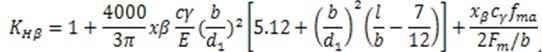 齒向載荷分布系數(shù)KFβ是考慮沿齒寬載荷分布對(duì)齒根彎曲應(yīng)力的影響。對(duì)于所有的實(shí)際應(yīng)用范圍,KFβ可按下式計(jì)算: