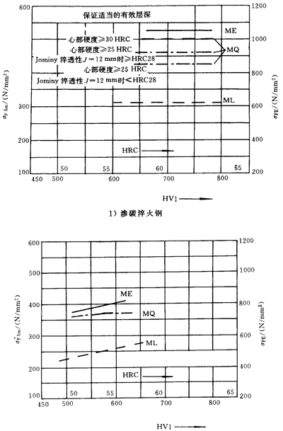 圖25b 滲碳淬火鋼和表面硬化(火焰或感應(yīng)淬火)鋼的σFlim和σFE