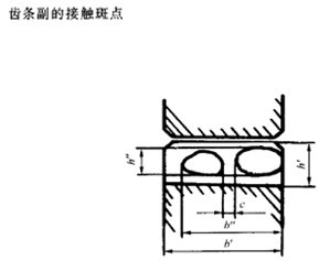裝配好的齒條副,在輕微的制動(dòng)下,運(yùn)轉(zhuǎn)后齒面上分布的接觸擦亮痕跡