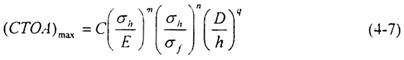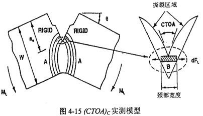 (CTOA)c可以通過攝像機(jī)從實物裂紋擴(kuò)展的照片上觀測得到,也可同CVN或DWTT實驗建立聯(lián)系。Wilkowski分別建立了基于CVN和DWTT吸收功的(CTOA)c經(jīng)驗算法,模型如圖4-15。另一種方法是通過測定作用于試件上的總功,從裂紋擴(kuò)展能的角度計算(CTOA)c。