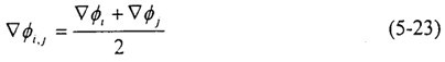 的計算主要是求出控制面上相關物理量的梯度值。首先由(5-19)式求出各單元內物理量ф的梯度值后,界面(i,j)上物理量的梯度值可簡單地由相鄰單元內物理量ф的梯度值的算術平均得出: