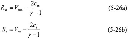 其中無反射邊界條件是根據(jù)特征線的方法來求出邊界上的參數(shù)值。根據(jù)一維完全氣體無粘非定常運動的方程組,在亞聲速的條件下由邊界上的入射波和出射波關系可以得到兩個Riemann不變量:
