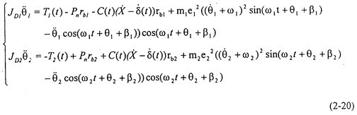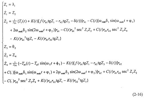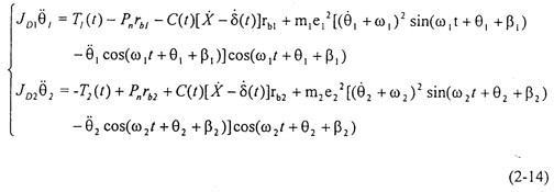 當(dāng)不考慮偏心質(zhì)量,而只考慮存在齒輪齒側(cè)間隙時,方程組(2-14)可化為: