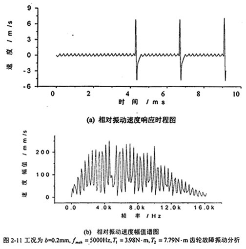 圖2-8中,(a)圖和(b)圖分別是當(dāng)齒輪嚙合頻率仍為5888Hz、但齒側(cè)間隙增加到b=0.3Omm