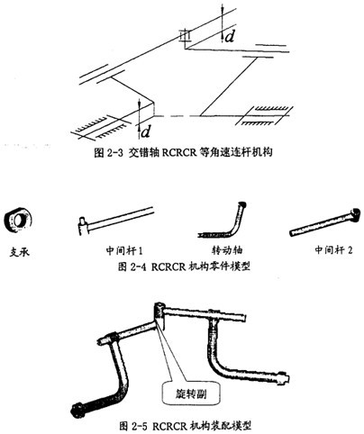 等角速回轉(zhuǎn)連桿機(jī)構(gòu)大多為空間機(jī)構(gòu),解析較繁難,其尺度約束關(guān)系式較復(fù)雜。對(duì)它的研究,只能從某些方向著手,目前我國(guó)有的學(xué)者利用基本的回轉(zhuǎn)機(jī)構(gòu)等角速理論為出發(fā)點(diǎn),利用機(jī)構(gòu)學(xué)中型演化和運(yùn)動(dòng)鏈疊加等方法得出了多種具有等角速特性的機(jī)構(gòu)。其理論和方法如下: