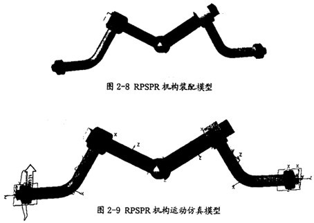 上述的理論是在鏡面機(jī)構(gòu)(據(jù)現(xiàn)有的理論是等角速度機(jī)構(gòu))的基礎(chǔ)上,解出曲柄條件,得到機(jī)構(gòu)等角速運(yùn)動(dòng)的尺寬約束關(guān)系式。為了驗(yàn)證這一方法的可行性,特制作了如正氣RPSPR平面相交軸模型(如圖2-8所示),這個(gè)模型的結(jié)構(gòu)左右未完全對(duì)稱(chēng)(兩個(gè)移動(dòng)副到球面副的距離不同)。
