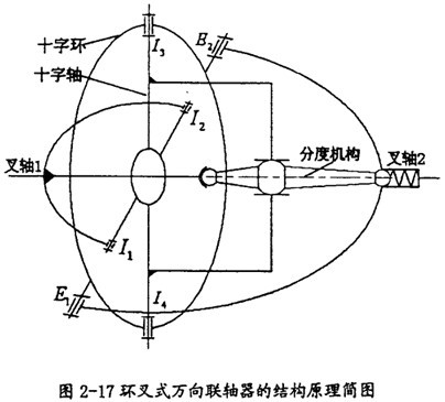 環(huán)叉式萬(wàn)向聯(lián)軸器的結(jié)構(gòu)原理: