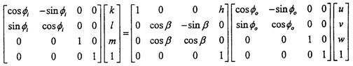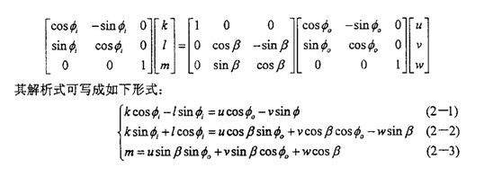 十字軸萬(wàn)向聯(lián)軸器的機(jī)構(gòu)實(shí)際上是球面四連桿機(jī)構(gòu),它的空間運(yùn)動(dòng)關(guān)系早已解析出。當(dāng)輸入、輸出兩軸線(xiàn)的夾角為β輸入軸轉(zhuǎn)角ф
