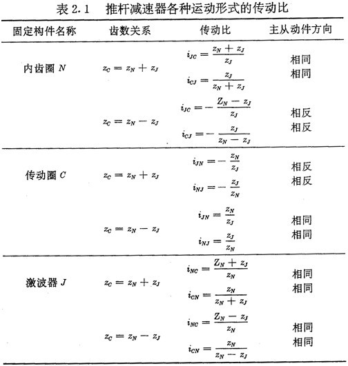 并且ZN應(yīng)是ZJ的整數(shù)倍。當(dāng)式(2.1)取“+ ”號時,推桿減速器為正向結(jié)構(gòu),取“一”號時為反向結(jié)構(gòu)。