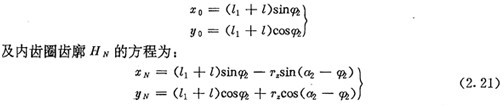 代入(2.24)式及(2.21)式就可求得H2的曲率及內(nèi)齒圈齒廓HN的方程。