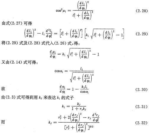 下面再推導(dǎo)一下齒廓及其法向等距線的相對曲率關(guān)系。設(shè)HJ的孤長參數(shù)為SJ,相對曲率為kJ,而H1的孤長參數(shù)為S1,相對曲率為k1,由微分幾何可得: