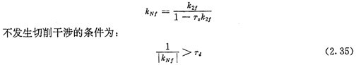 另外,當(dāng)選用半徑為Td的刀具加工內(nèi)齒圈齒廓時,在齒根處可能發(fā)生切削干涉(過渡切削)。同樣由式(2.24)可計(jì)算出曲線H2在對應(yīng)于齒根處的相對曲率kZ 了,齒廓曲線HN在齒根處的相對曲率kNf為: