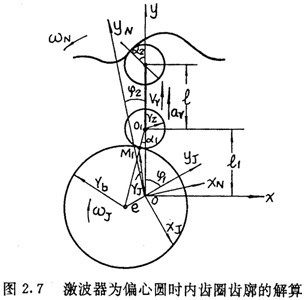 取固定坐標(biāo)系(o,x,y)及分別與激波器和內(nèi)齒圈固聯(lián)的坐標(biāo)系(o,xJ,yJ,)和(o,xN,yN),如圖2.5所示,它們在初始位置是重合的。