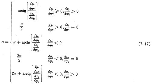 2點(diǎn)向徑與法線的夾角,可由圖7.3求得,為: