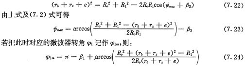 在前面討論的推桿減速器中,推桿的工作區(qū)域角及非工作區(qū)域角是相等的,在內(nèi)斷圈齒廓既不進(jìn)行修形又無(wú)頂切的理論情況下,工作推桿數(shù)為推桿總數(shù)的一半。而在擺桿減速器中,擺動(dòng)機(jī)構(gòu)的工作區(qū)域角與非工作區(qū)域角并不相等,其工作區(qū),或角由式(7.31)及式(7.24)確定,因而即使在內(nèi)齒圈齒廓既不進(jìn)行修形又無(wú)頂切,自理論情況下,工作擺動(dòng)機(jī)構(gòu)數(shù)目也不再是擺動(dòng)機(jī)構(gòu)總數(shù)的一半。根據(jù)激波器轉(zhuǎn)向的不同,工作擺動(dòng)機(jī)構(gòu)數(shù)目可能會(huì)超過(guò)總數(shù)的一半,也可能會(huì)少于總數(shù)的一半。