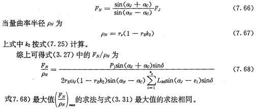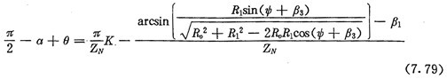 ]之內(nèi),只能使整個(gè)齒廓曲線的一部分由方程式(7.9)正確表示。為了使齒廓上所有的點(diǎn)都能用方程式(7.9)來(lái)正確計(jì)算,a的表示式應(yīng)為: