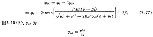 用選代法解方程(7.79),可得到齒廓AB上與跨槽數(shù)為K的齒廓A′B′具有公法線的點(diǎn)P所對(duì)應(yīng)的外滾子位置角